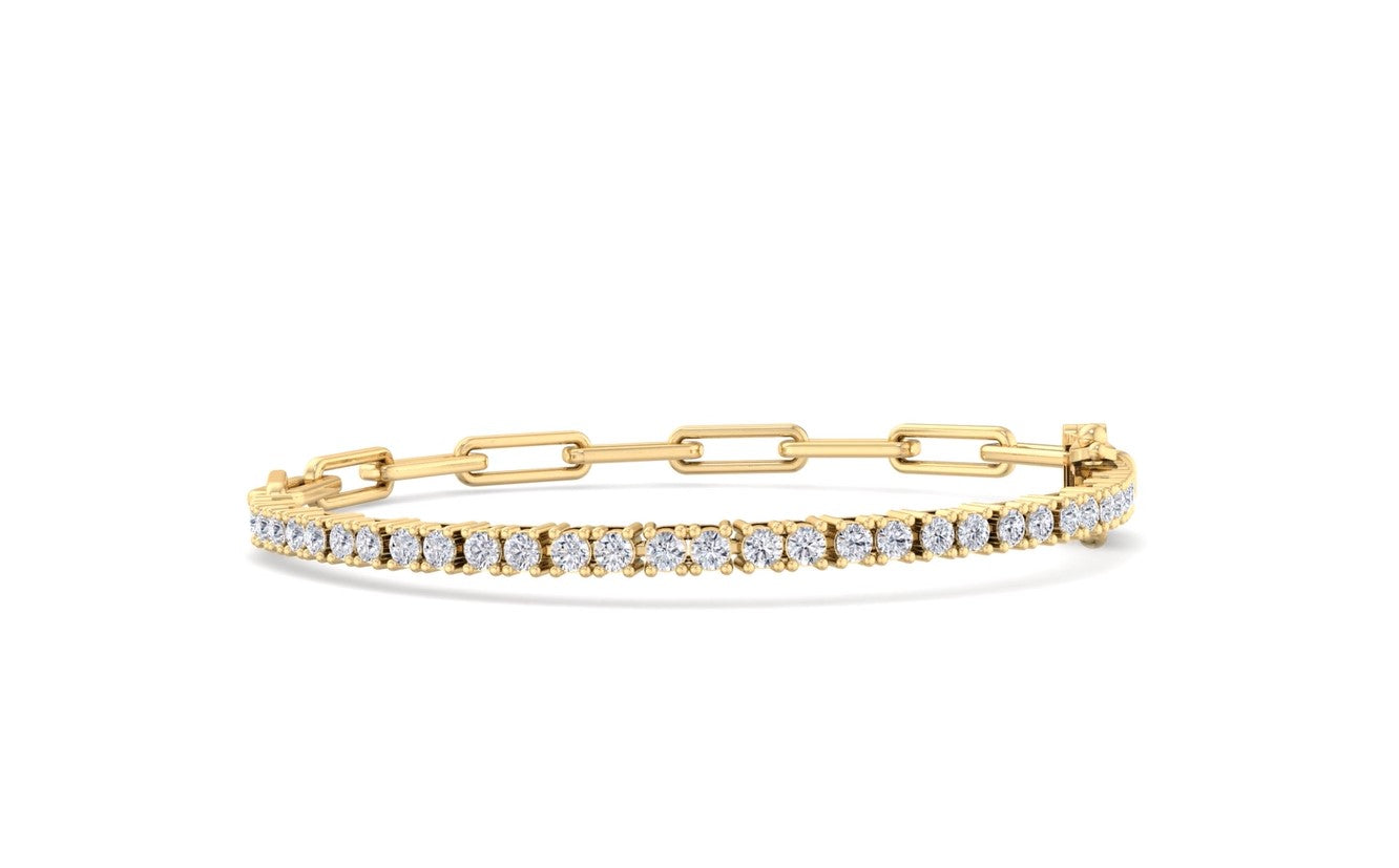Elevate your style with our 14k Gold Paperclip and Diamond Tennis Bracelet. This chic piece blends the bold. chunky sophistication of a gold paperclip chain with the radiant sparkle of lab-created round brilliant diamonds set in a sleek tennis-style section. Available in 14k yellow gold or 14k white gold. it combines sustainable luxury with contemporary elegance. Handcrafted in Naples by Sakaris Jewelers. this bracelet is perfect for everyday wear. layering. or special occasions. offering a striking balance of modern edge and timeless glamour. Shine with its bold. multifaceted charm.