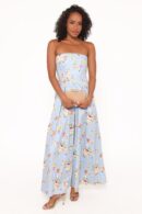 Get ready to turn heads with the Wren Jumpsuit. a must-have for your next outing. This strapless stunner features a sleek straight neckline. supported by an inner bust rubber grip that ensures everything stays perfectly in place while you dance the night away.
